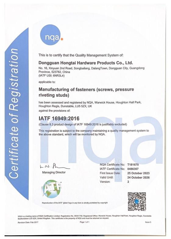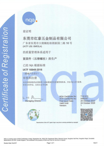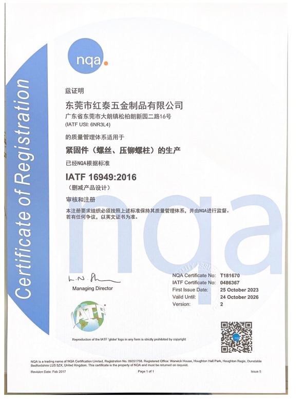 東莞市紅泰五金制品有限公司,公司占地六千多平方米,擁有五十多組螺絲機及六十臺自動車床設備。是一家專業(yè)設計、生產ISO、DIN、GB、JIS、ANSI、BS及客戶指定特殊要求的高精密五金緊固件的制造企業(yè)。